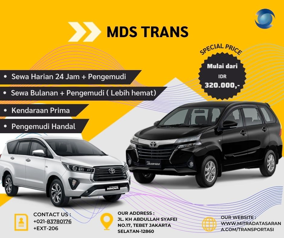Untuk melengkapi jasa layanan sewa, Mitra Data Sarana menyediakan layanan pengemudi yang profesional, terlatih, memiliki pengetahuan yang luas akan wilayah dan jalan, serta etika mengemudi sehingga akan mendapatkan kepuasan dalam memilih Mitra Data Sarana sebagai penyedia jasa layanan pengemudi.